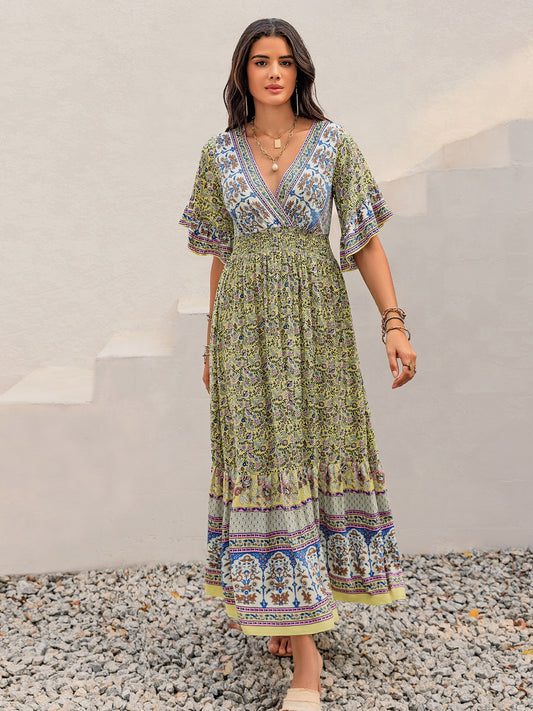 Vendor:TrendsiRegular price $24.99Regular priceUnit price / per$38.99Sale price $24.99SaleRuched Printed Flounce Sleeve Maxi Dress