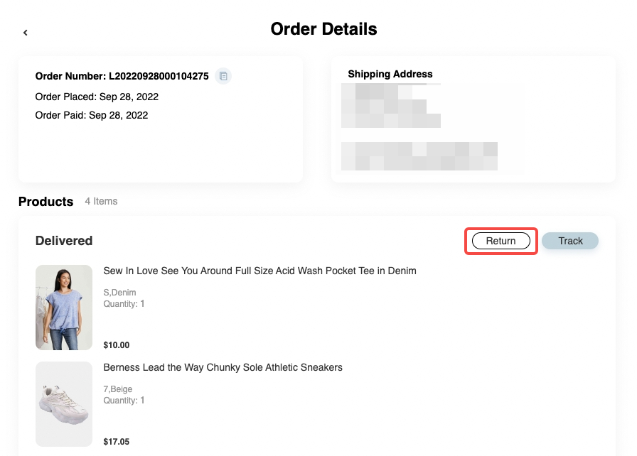 (Products that are eligible for return and still within the return window will have the "Return" button)