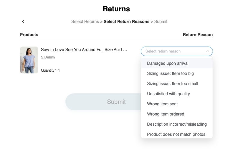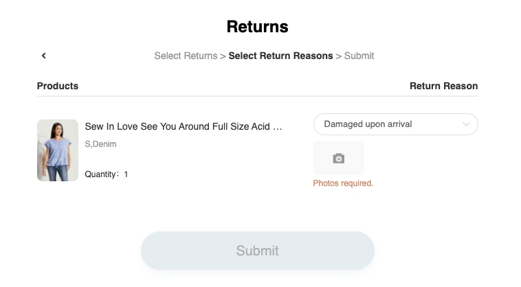 Note: Some return reasons will require a photo submission, please submit clear photos showing the issue.